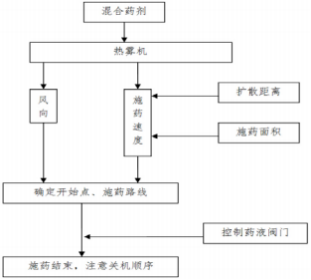該技術(shù)利用熱霧機械啟動后形成的高溫高壓氣體將農(nóng)藥及熱霧穩(wěn)定劑形成 含藥熱霧團,在目標空間內(nèi)形成氣溶膠,當靶標接觸后達到病蟲害防治效果。